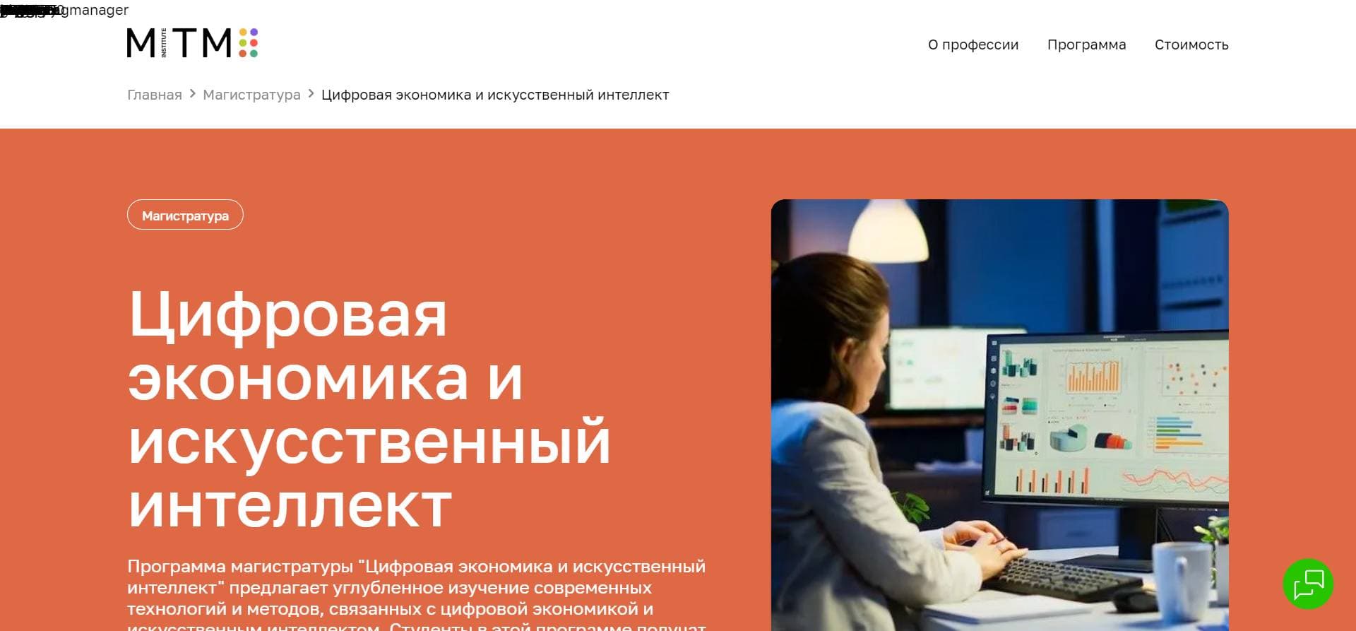 Магистратура "Цифровая экономика и искусственный интеллект" от Московского Института Технологий и Управления оставляет положительные впечатления. Программа обучения предоставляет студентам глубокие знания в области современных технологий, связанных с цифровой трансформацией бизнеса.