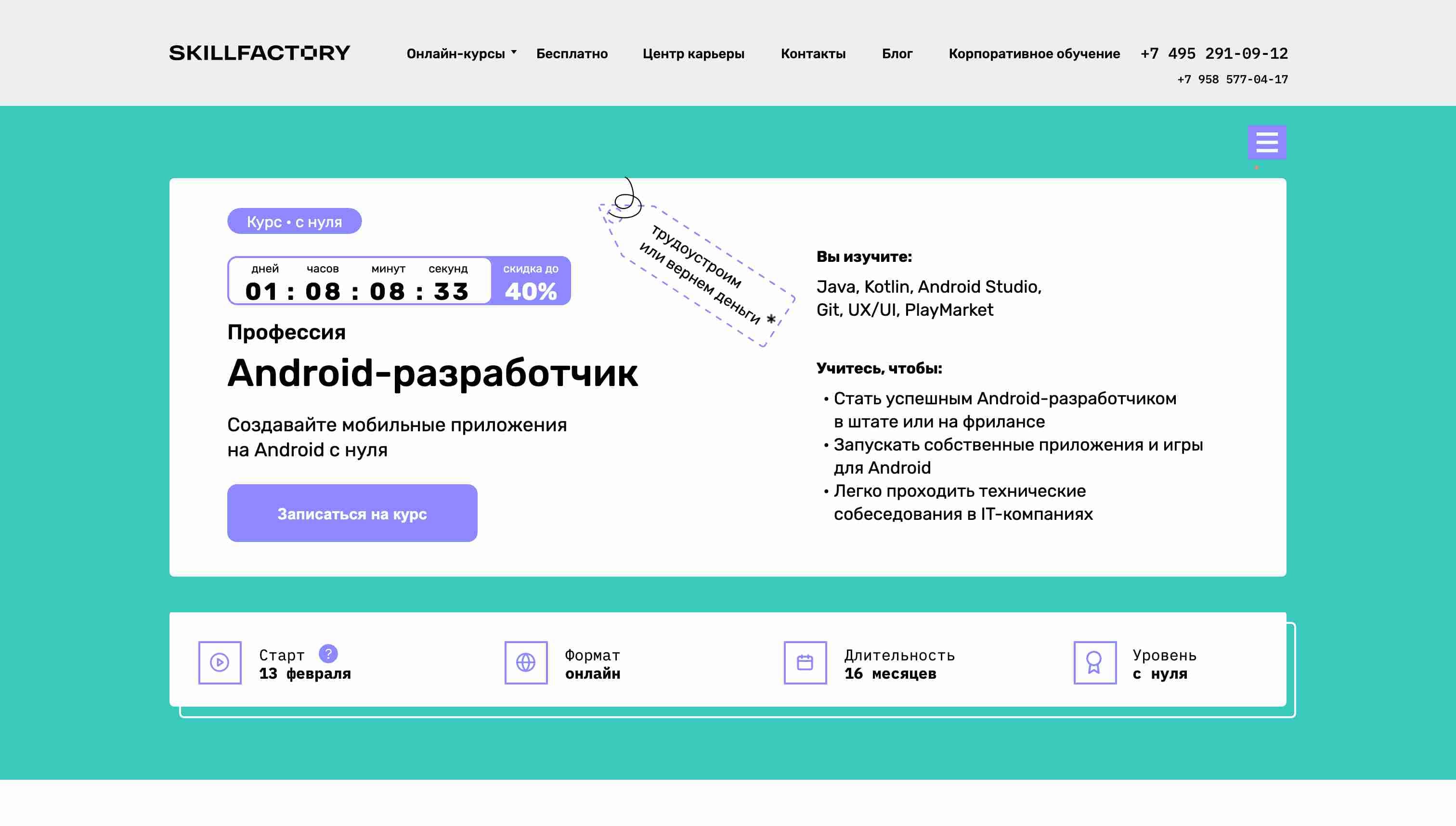 При регистрации на курс «Android-разработчик» от Skillfactory, у вас есть уникальная возможность сэкономить. Используя промокод AFF9S*, вы получите скидку на обучение. Это отличный шанс начать обучение по более выгодной цене.